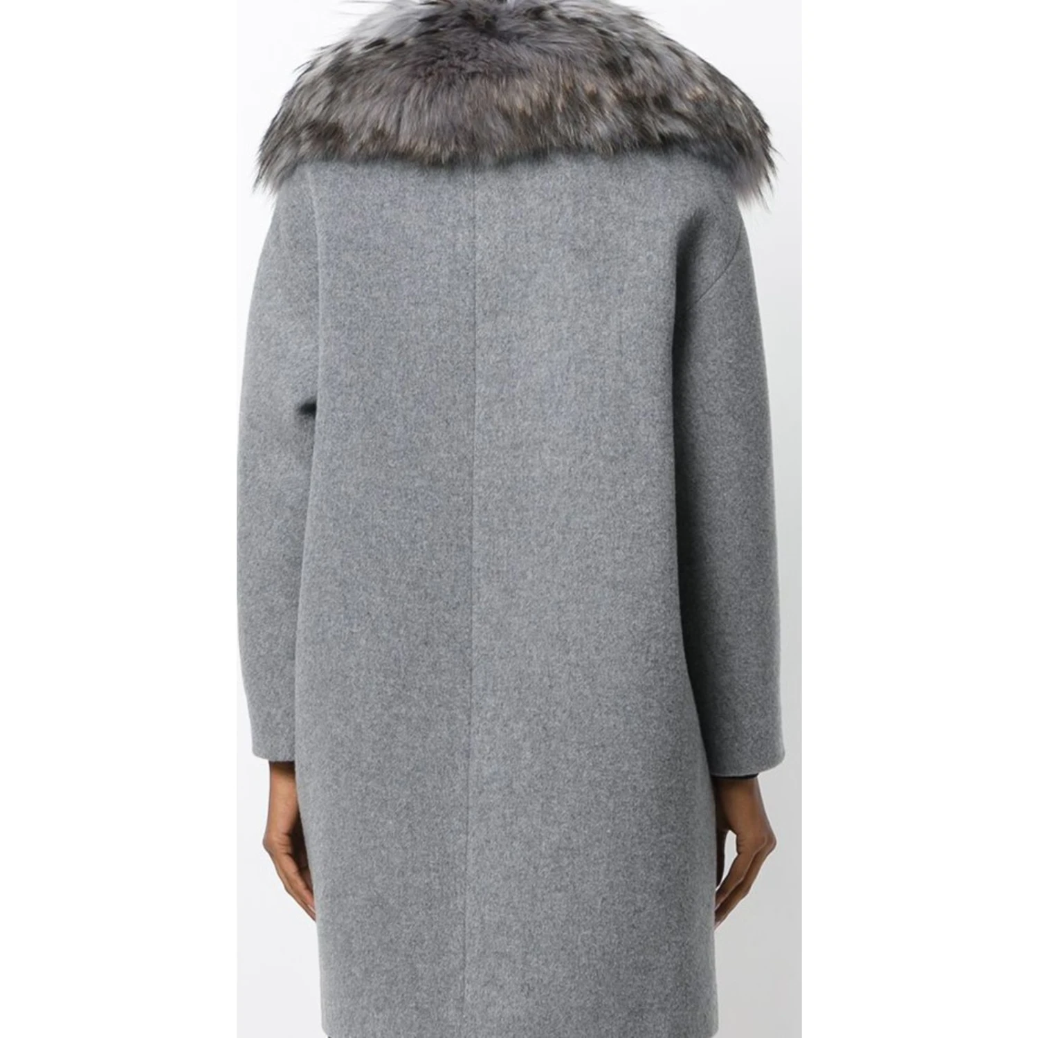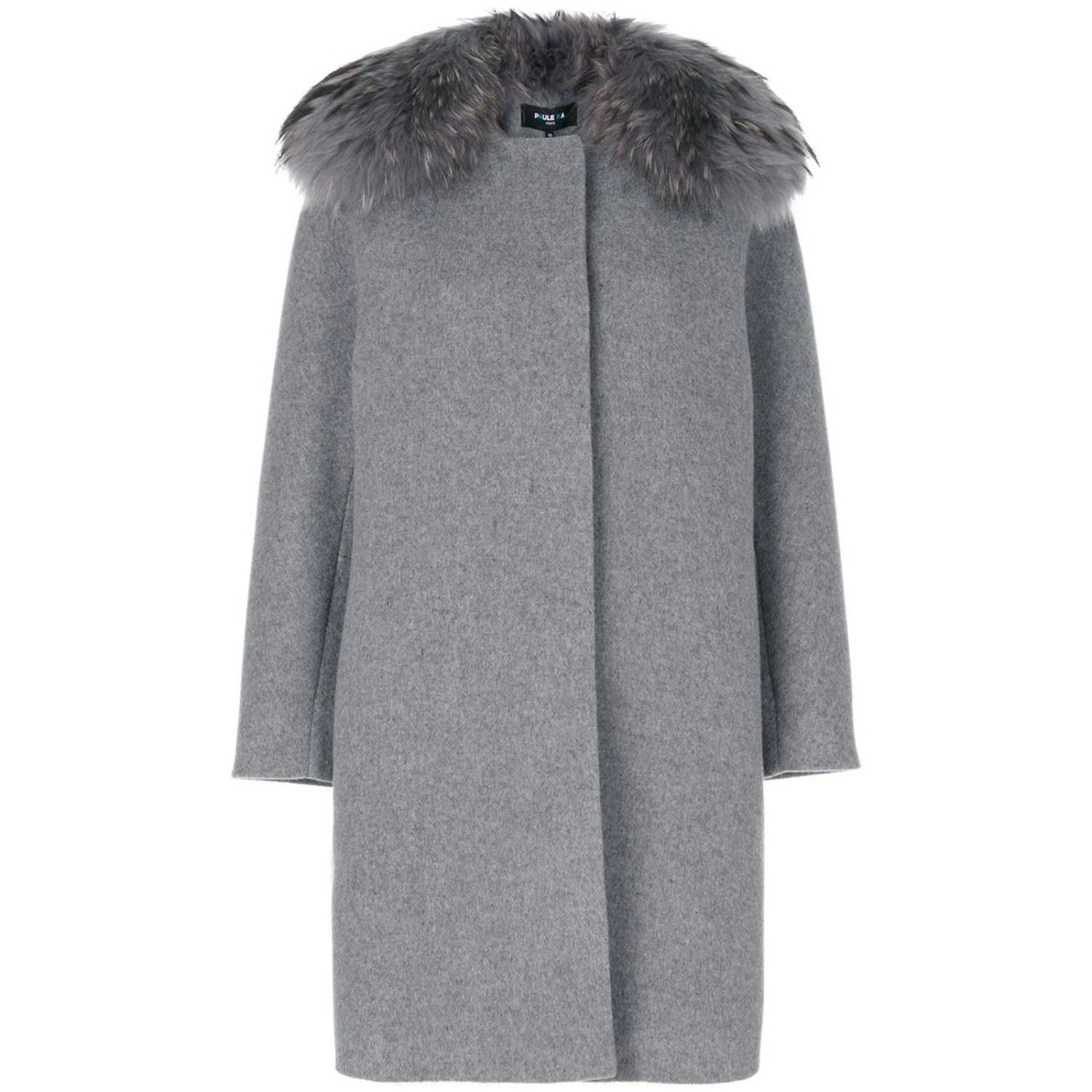 MANTEAU PAULE KA COL FOURRURE GRIS PERLE