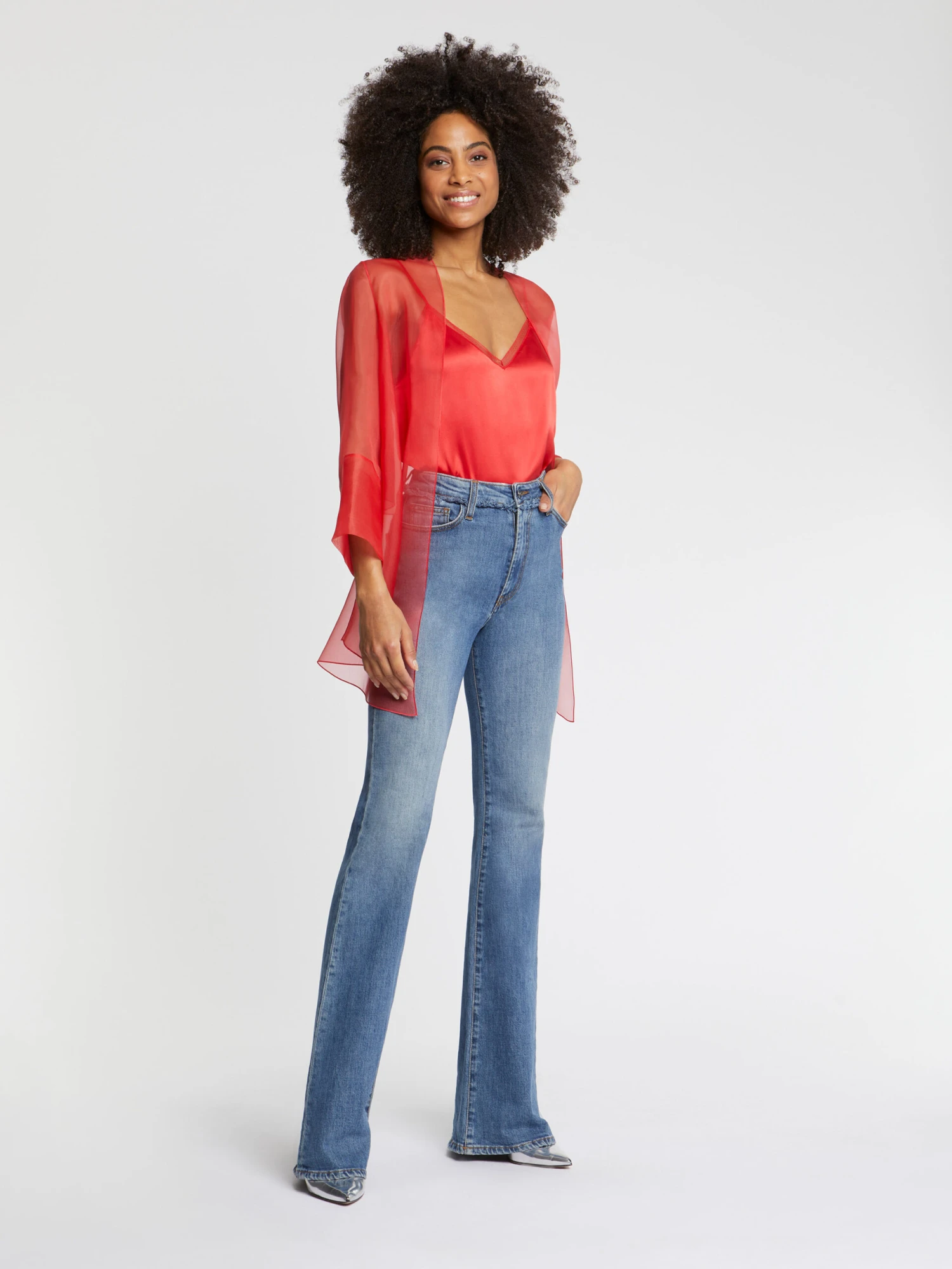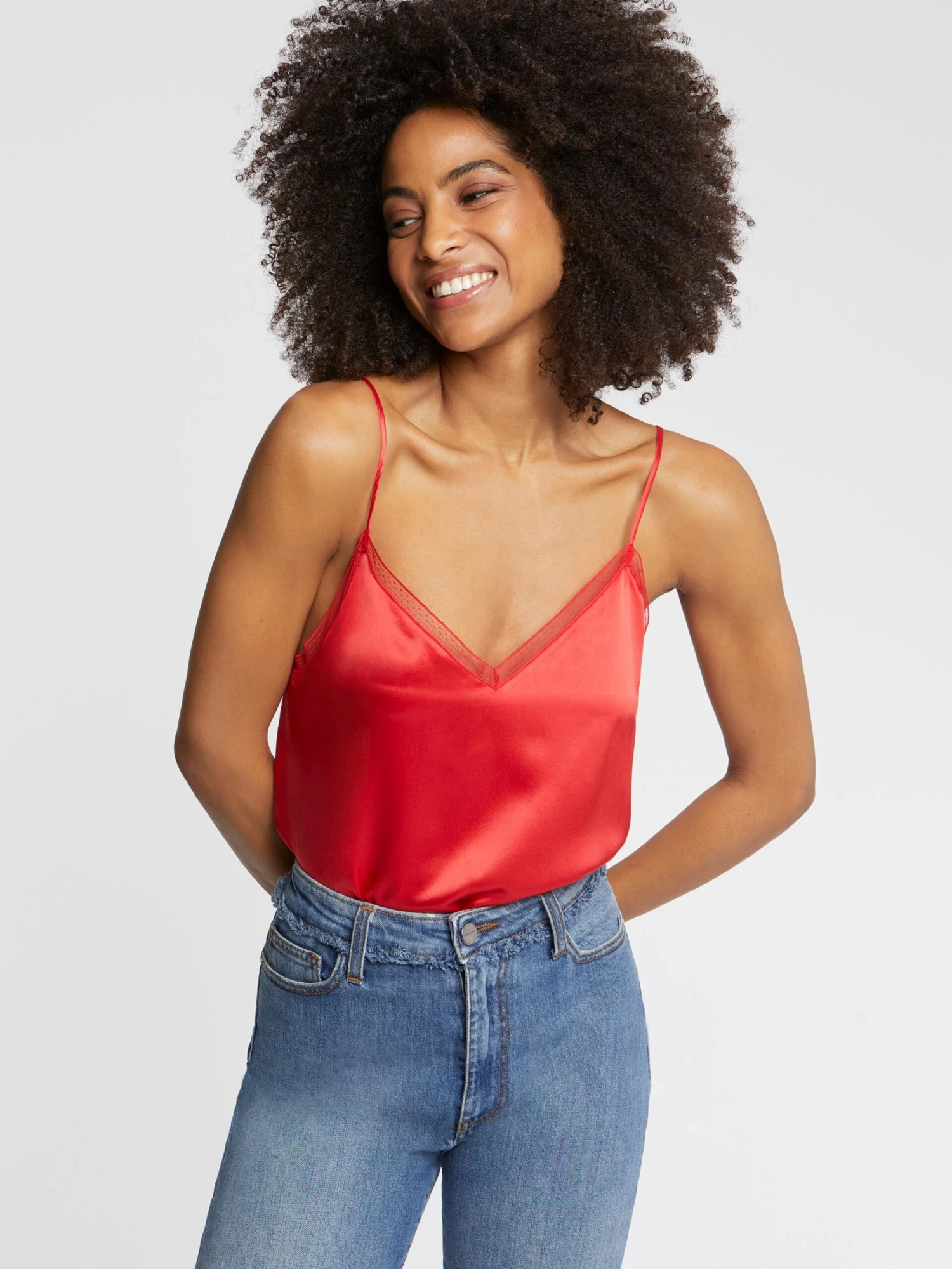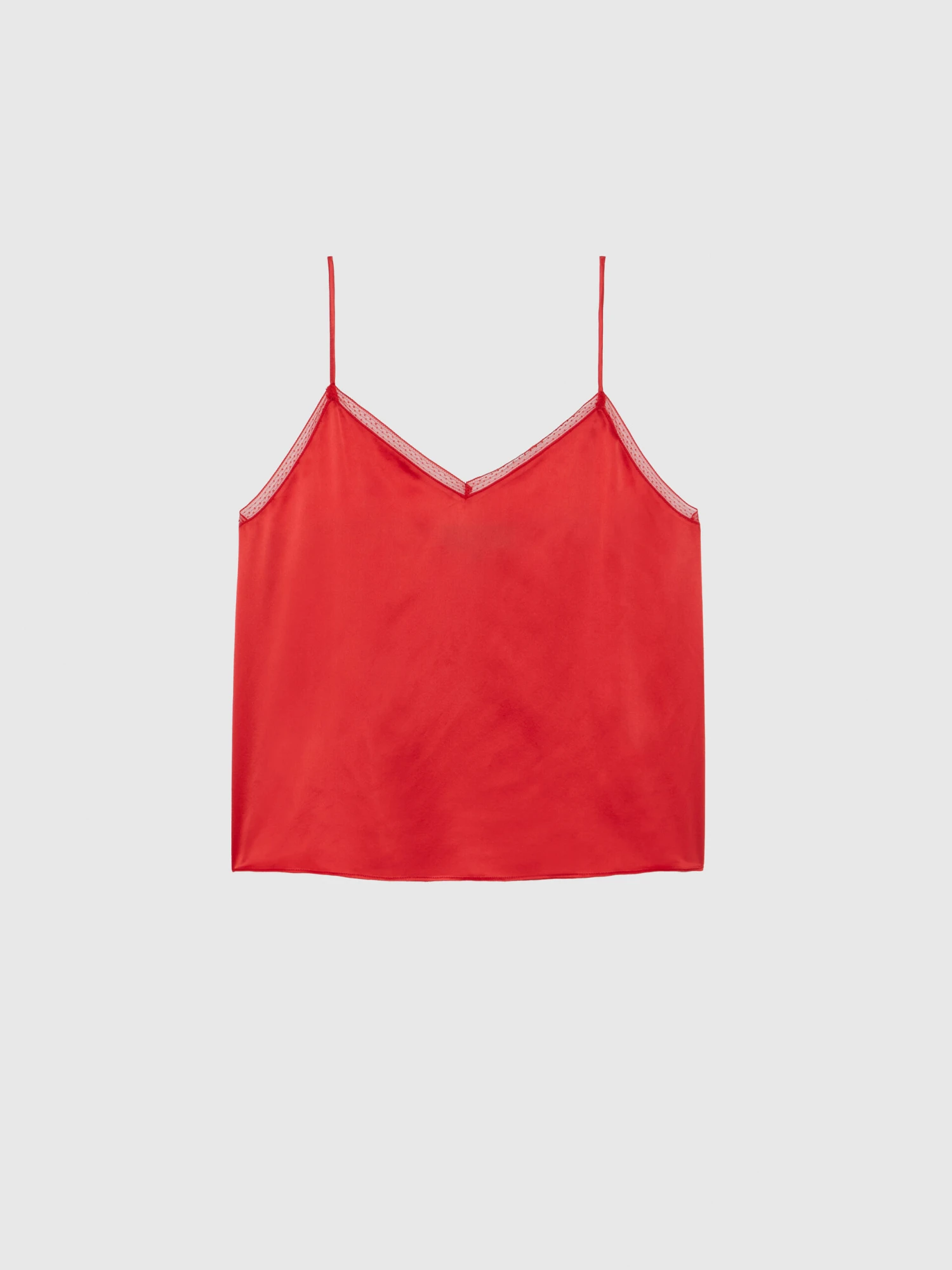 Le caraco en satin de soie est lĂ©ger, doux et rĂ©solument glamour. Sa ligne très Ă©chancrĂ©e sur les cĂ´tĂ©s est dotĂ©e de toute fines bretelles spaghettis et d’un dĂ©colletĂ© en V bordĂ© d’une dĂ©licate dentelle. Pièce phare de la tendance dessus-dessous, le top aux allures de sous-vĂŞtement se fait sophistiquĂ© sous une veste de bureau le jour ou sulfureux sur une jupe fendue le soir. Une pièce affriolante et rĂ©solument dĂ©sirable.