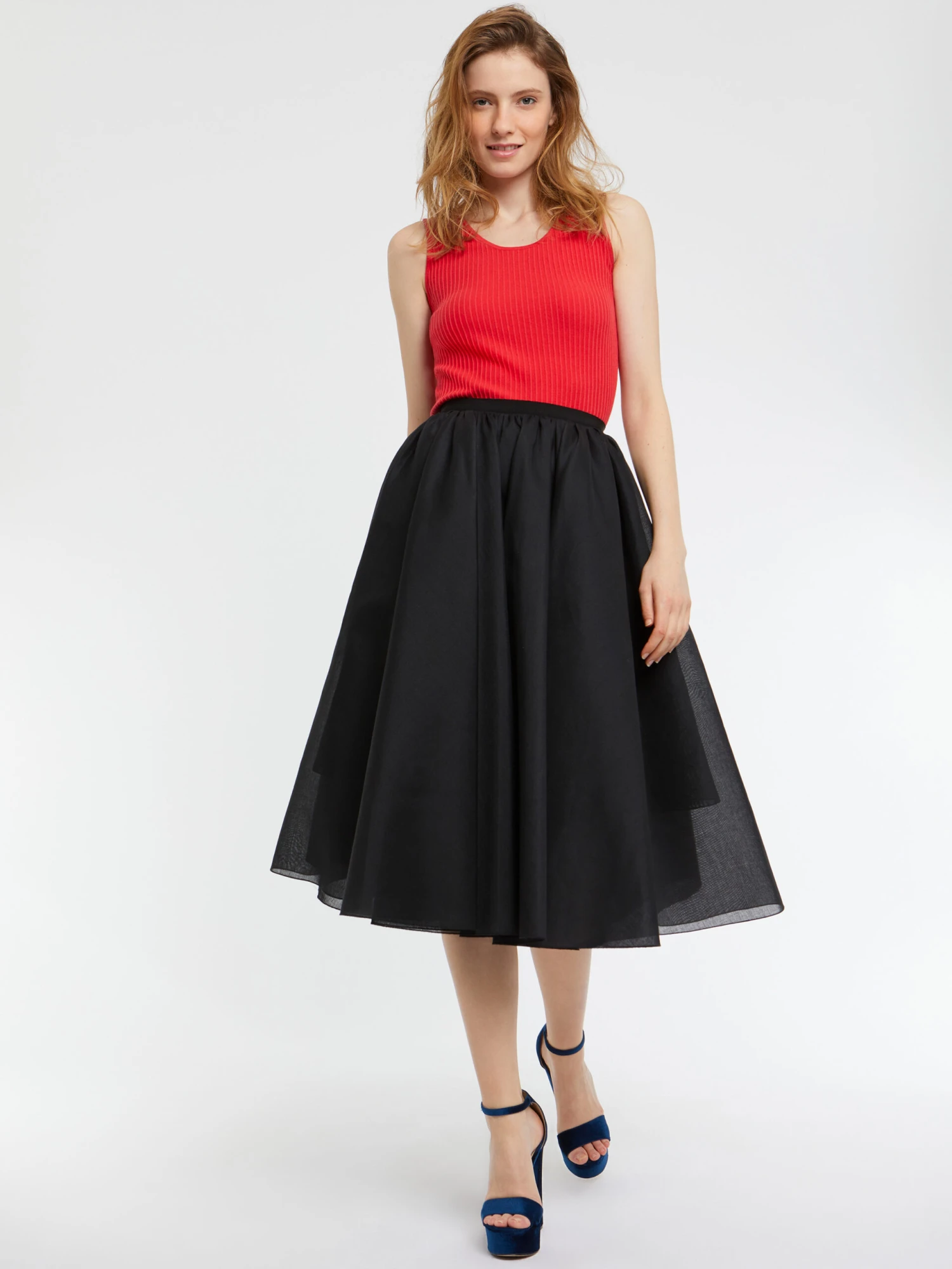 Le débardeur en coton se distingue de son homologue classique. Ici, il est confectionné en maille à relief et arbore un petit col montant. Un look sage et élégant qui exalte votre silhouette altière.