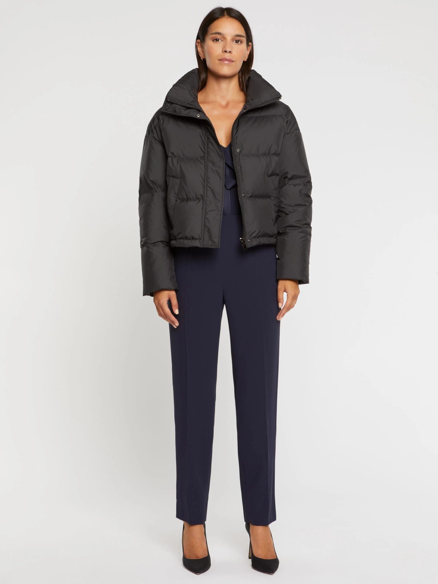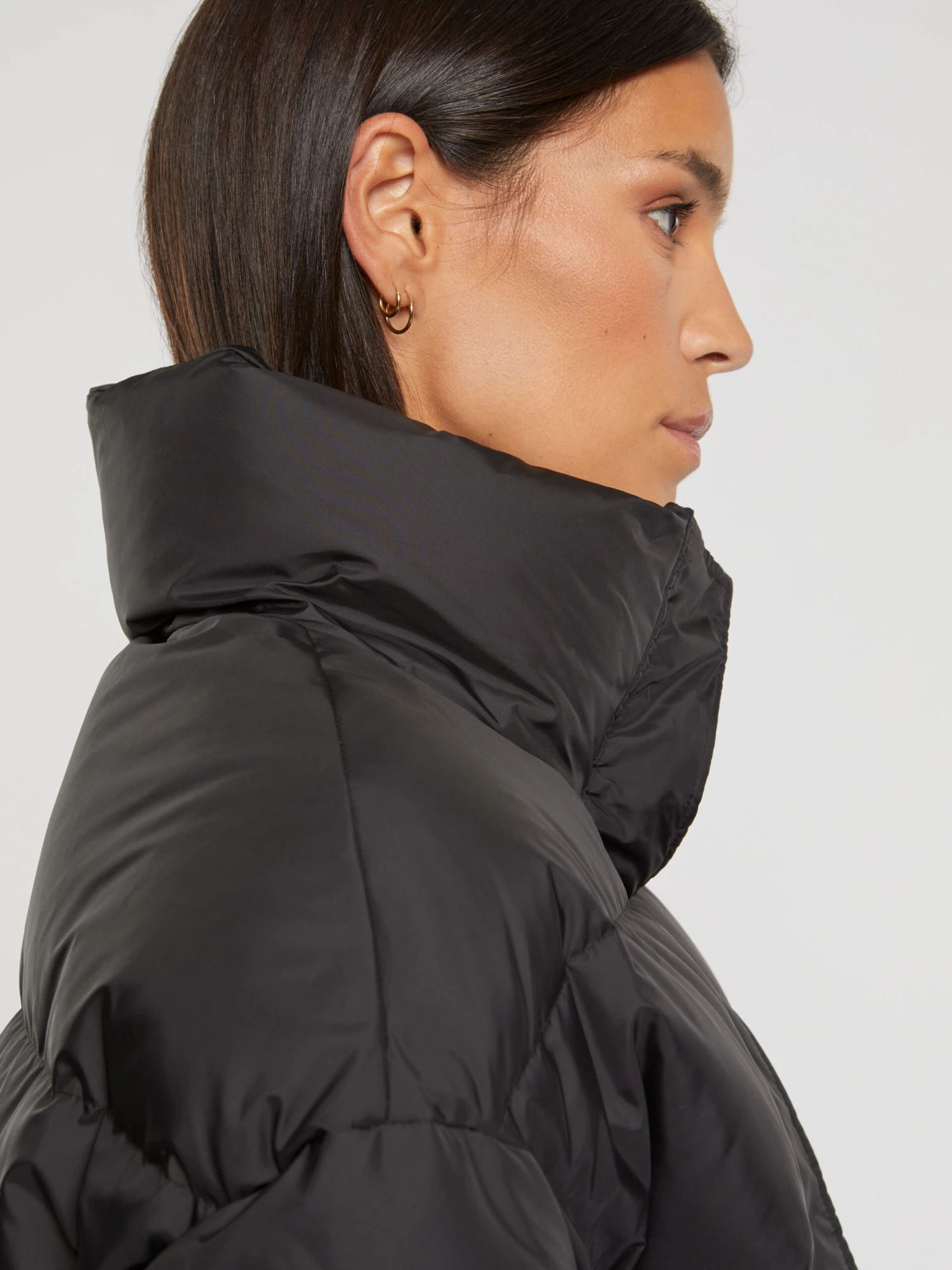 La grosse doudoune courte matelassée est rembourrée de plumes pour un porter chaud et douillet. Elle est munie de poches fendues, d’une double fermeture zippée à pressions et d’un haut col XXL qui protège du froid. Pratique, à l’intérieur une paire de bretelles permet de se découvrir tout en laissant pendre la doudoune dans le dos.