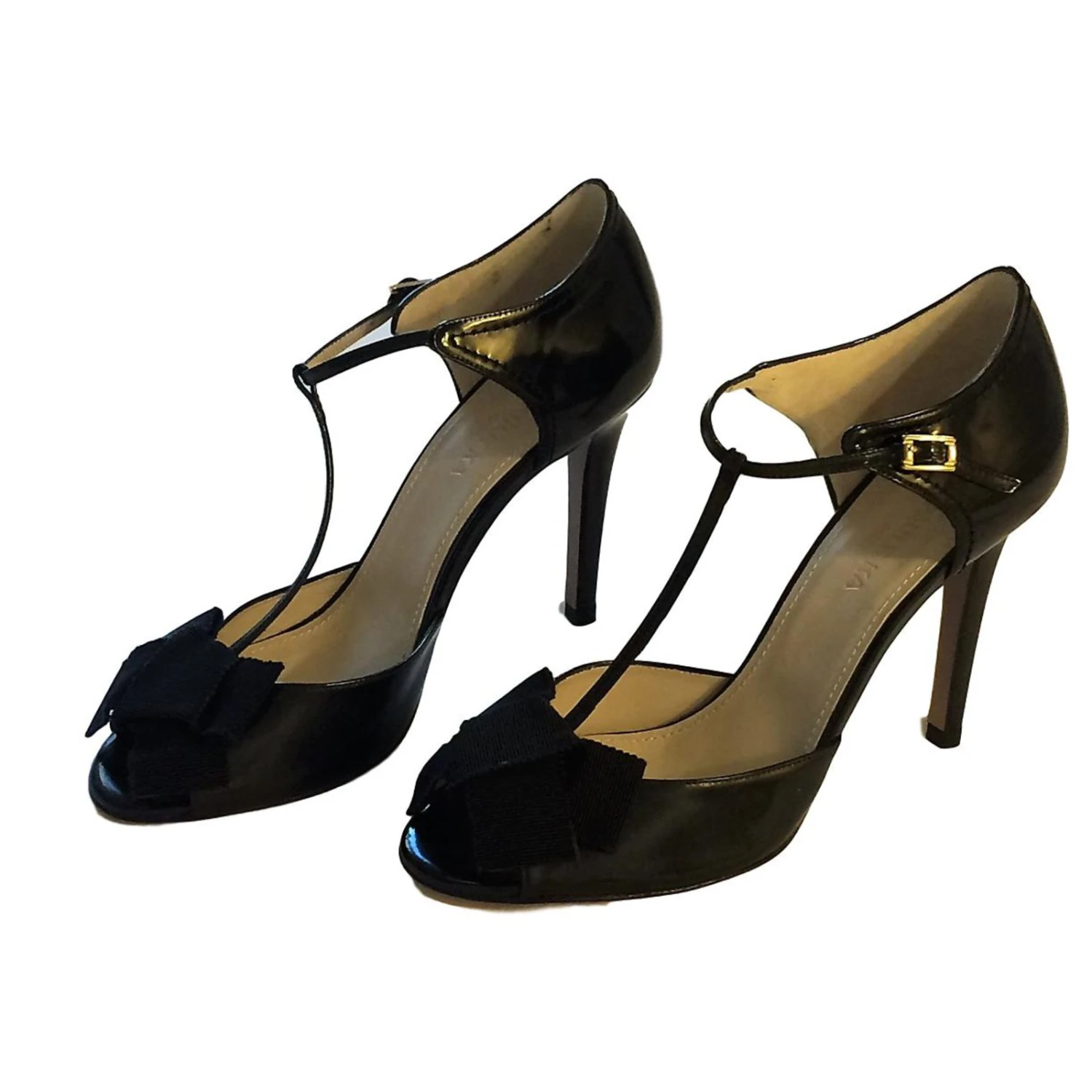 Très jolie paire de chaussures hautes noires type salomé avec bouts ouverts