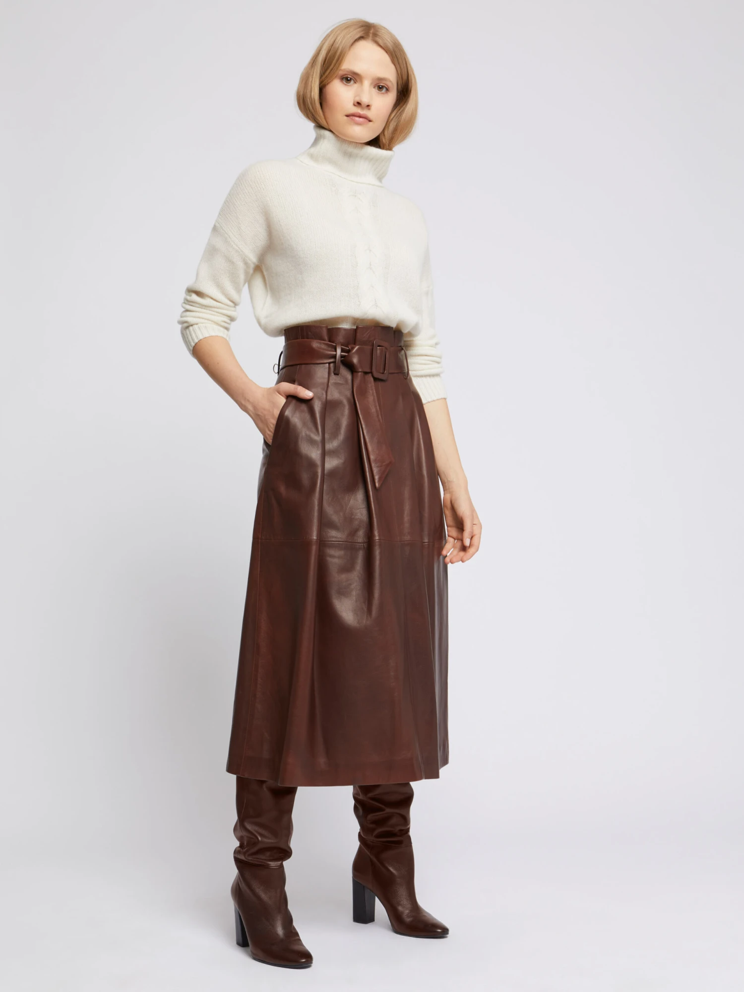 PAULE KA Jupe Longue Ceinturée En Cuir D’agneau