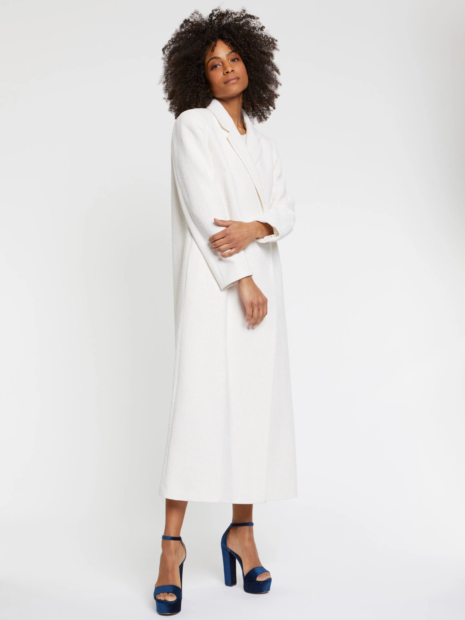 Le manteau mi-saison en tweed naturel est léger et résolument élégant. Spectaculaire, il se dessine dans une coupe ultra longue à fleur de cheville. La ligne minimaliste est dotée d’un col cranté et d’une fermeture croisée à pressions invisibles. Ultime symbole d’élégance ou tendance incontournable, le manteau long droit en tweed arbore un look sophistiqué irrésistible. Le manteau est doublé pour davantage de confort. La longueur à partir de la taille est de 90 cm.