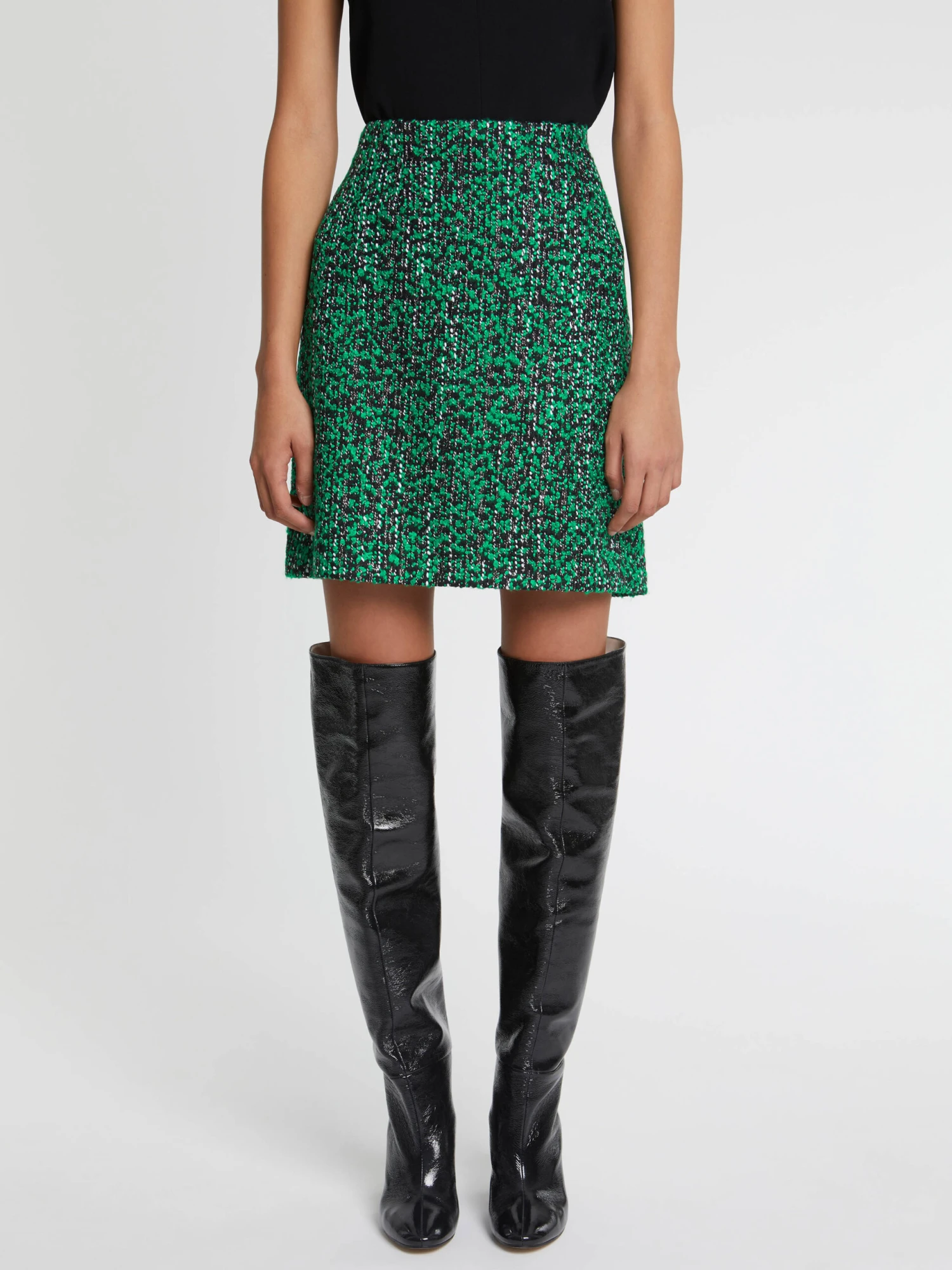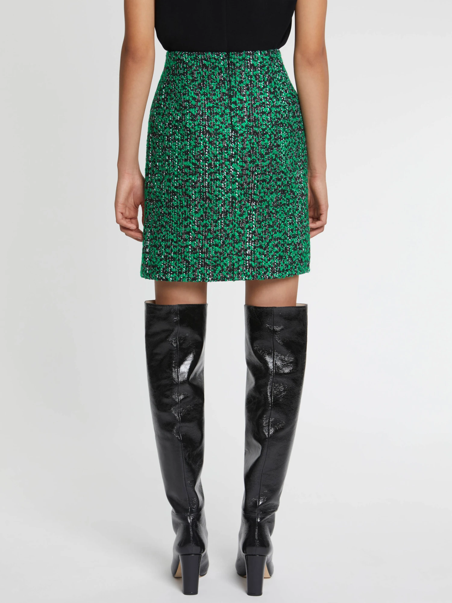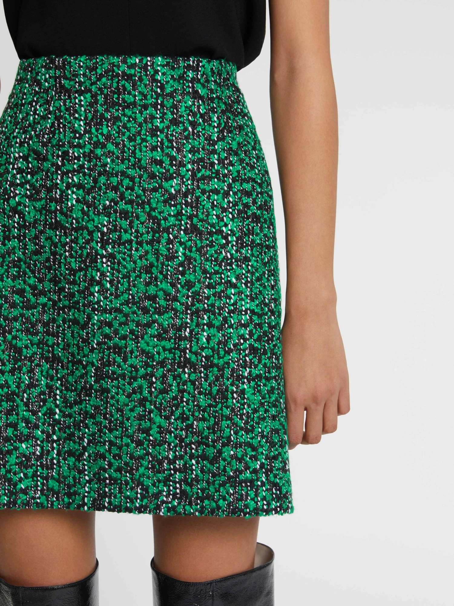 Pièce iconique de la tendance néo-bourgeoise, la jupe en tweed se moderninse. Ici, elle se porte mini dans une coupe légérement trapèze pour libérer vos mouvements. Sa teinte bicolore électrise son allure. La jupe se ferme au dos par un zip invisible, est doublée et mesure 55 cm de longueur.
