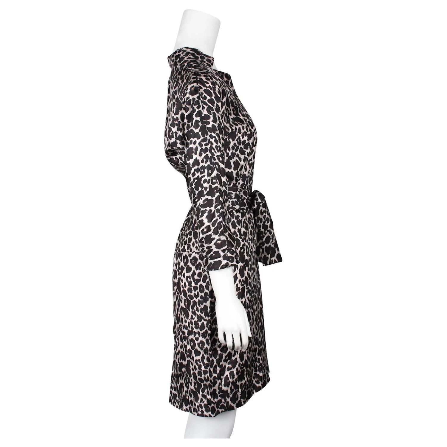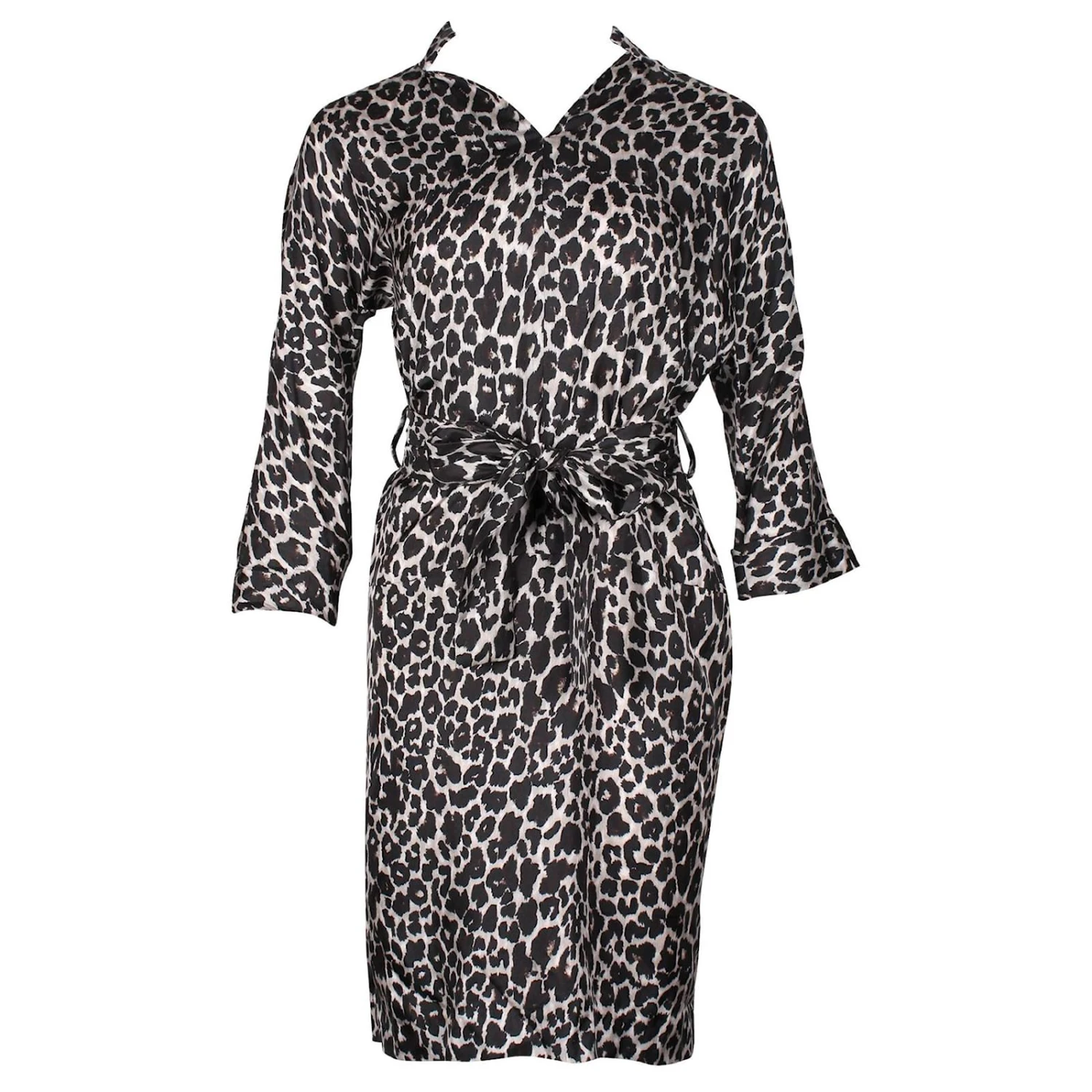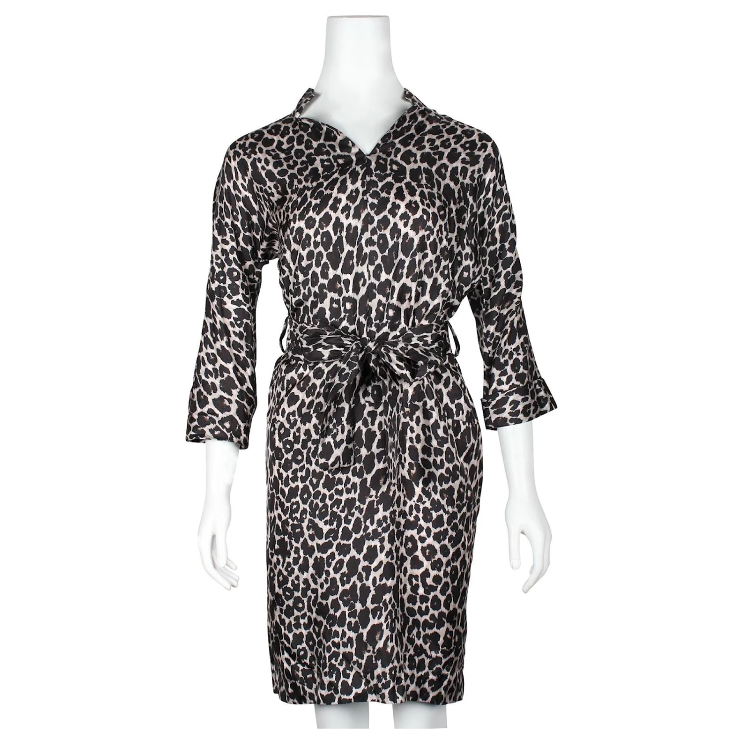 FABRIQUÉ EN ROUMANIE. Minirobe en soie à imprimé guépard avec ceinture amovible. En très bon état avec des traces d’usure minimes.
