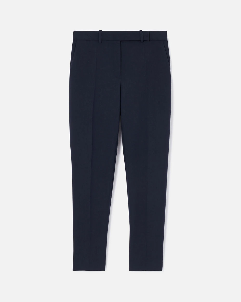 Pantalon en tricotine stretch. Deux poches plates et pli au milieu de jambe. Fermeture braguette zippée. Le mannequin mesure 179 cm et et porte une taille 38.