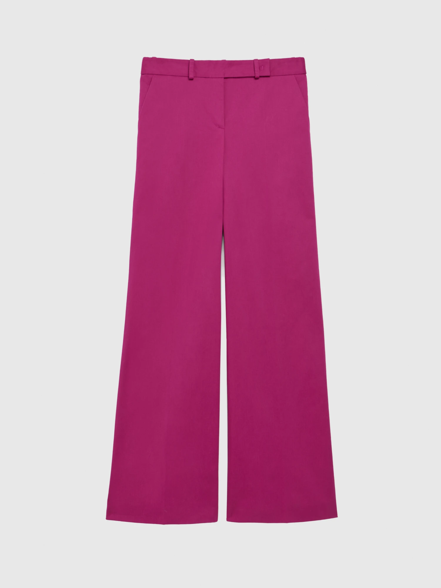 Chic et tendance, le pantalon flare fait partie des incontournables mode. Ici, il est confectionné en popeline de coton stretch, confortable et offre un tomber parfait. A partir de la taille, le pantalon semble s’évaser à l’infini et dessine une silhouette longiligne que vous élancerez davantage avec une paire de talons. Poches couture latérales, poches arrière passepoilées et longue patte de fermeture à crochet composent le vêtement.