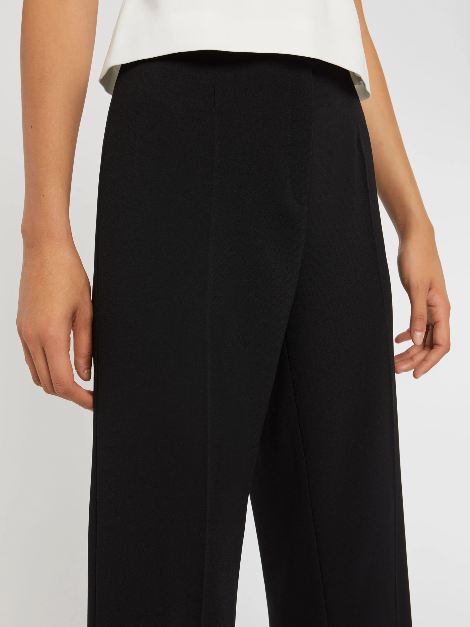 Le pantalon léger confectionné en crêpe envers satin procure une véritable douceur au porter. La coupe ample, souple et légère exalte la pureté d’une ligne minimale sans taille ni bouton de fermeture. Un pli le long de la jambe vient structurer le modèle élégant que vous rehausserez d’une paire de talons.