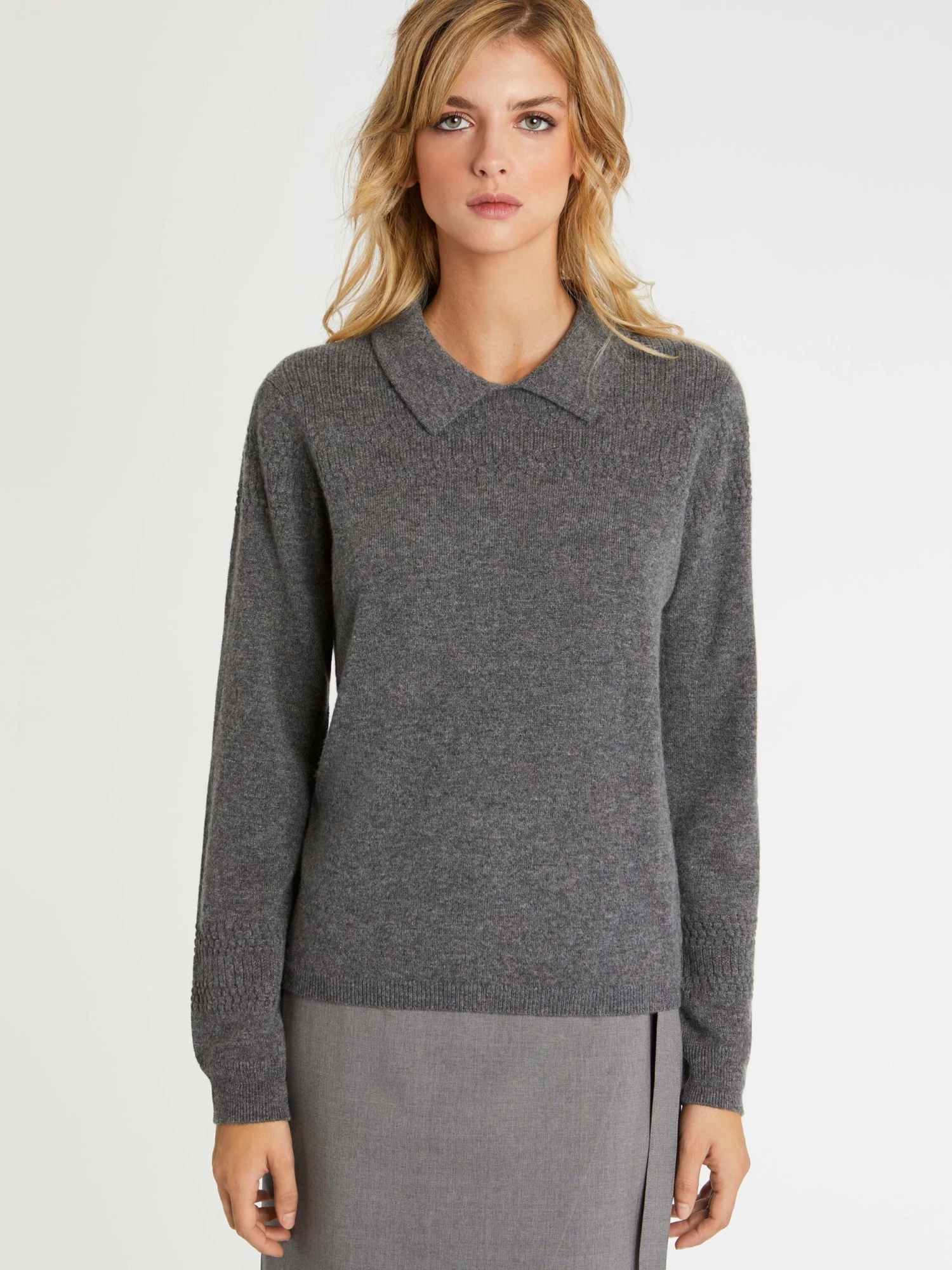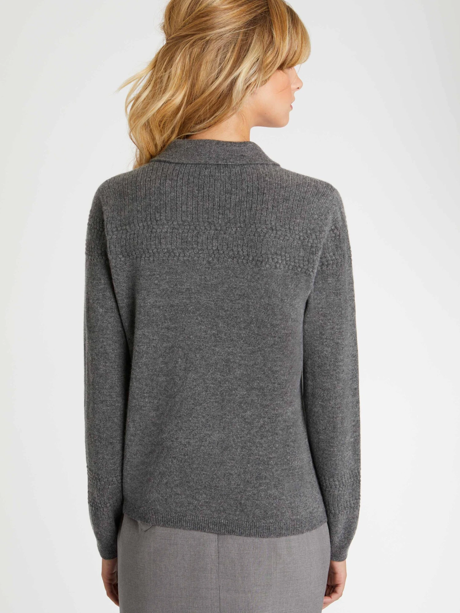 Le pull en 100% cachemire a un petit côté sage résolument séduisant. Confectionné en tricot fin, il alterne maille côtelée et points boules dans le haut du vêtement et aux poignets. Il est doté d’un petit col polo en maille qui respecte le dresscode sport-chic. Un vêtement facile et élégant que vous porterez en tout occasion.