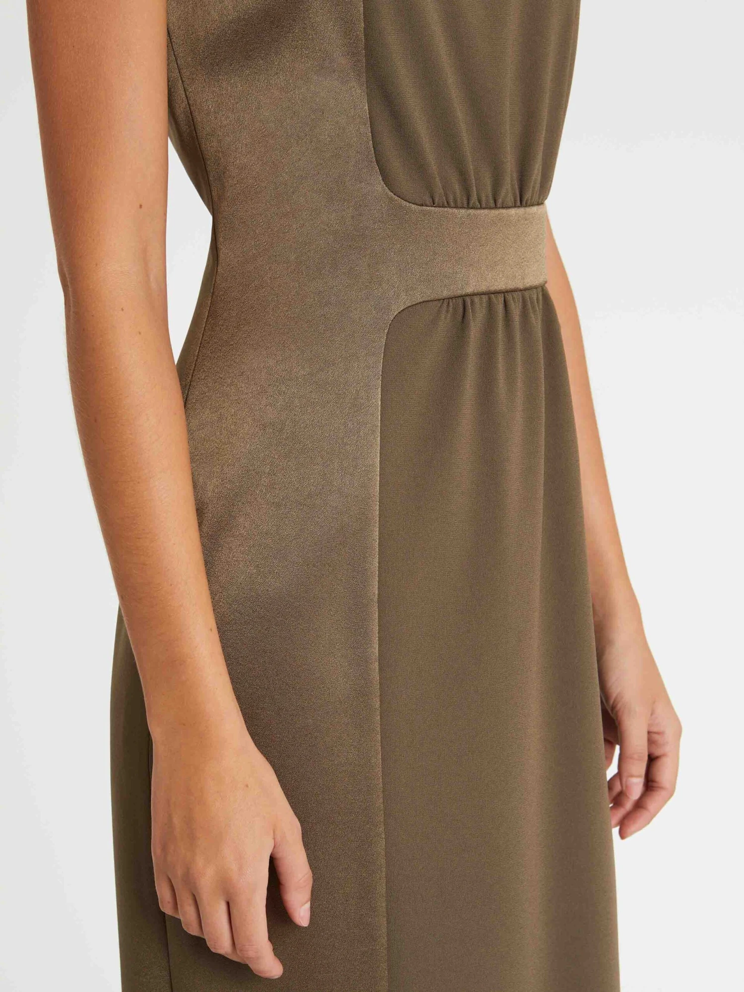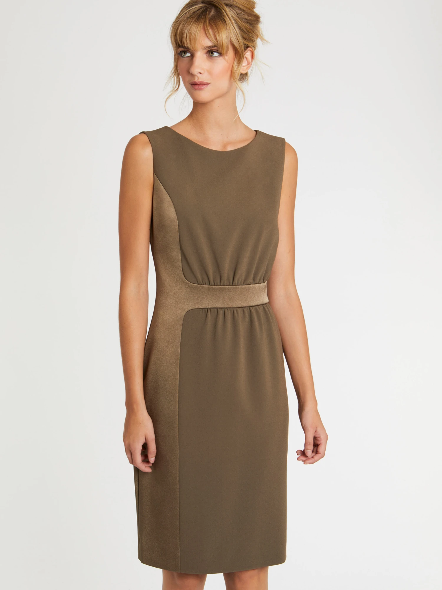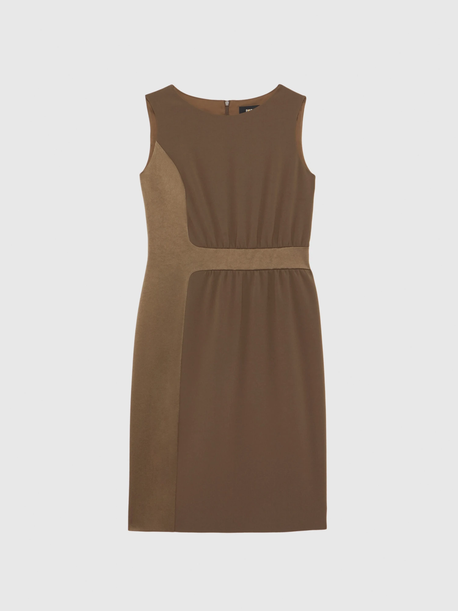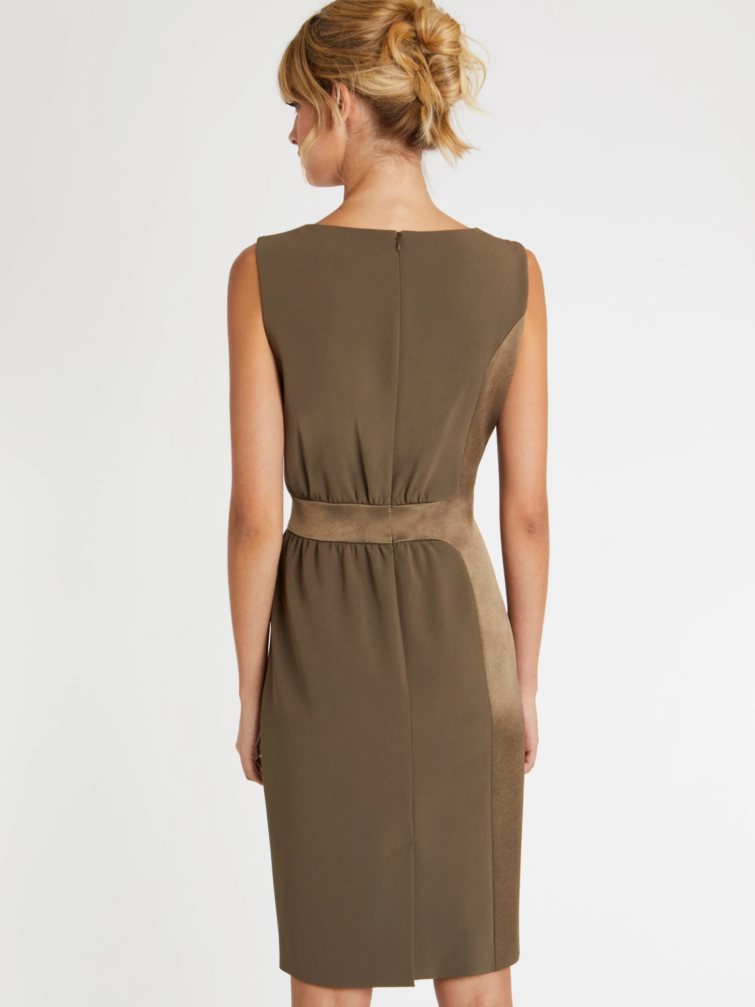 La robe courte coupe droite dompte le satin crêpe. En mixant endroit et envers, elle joue entre le brillant naturel du tissu calmé par le côté mat. La ligne essentielle sans manches à encolure arrondie fait la part belle aux effets de matières. Fermeture éclair invisible au dos. Longueur de la robe à partir de la taille : 60 cm.