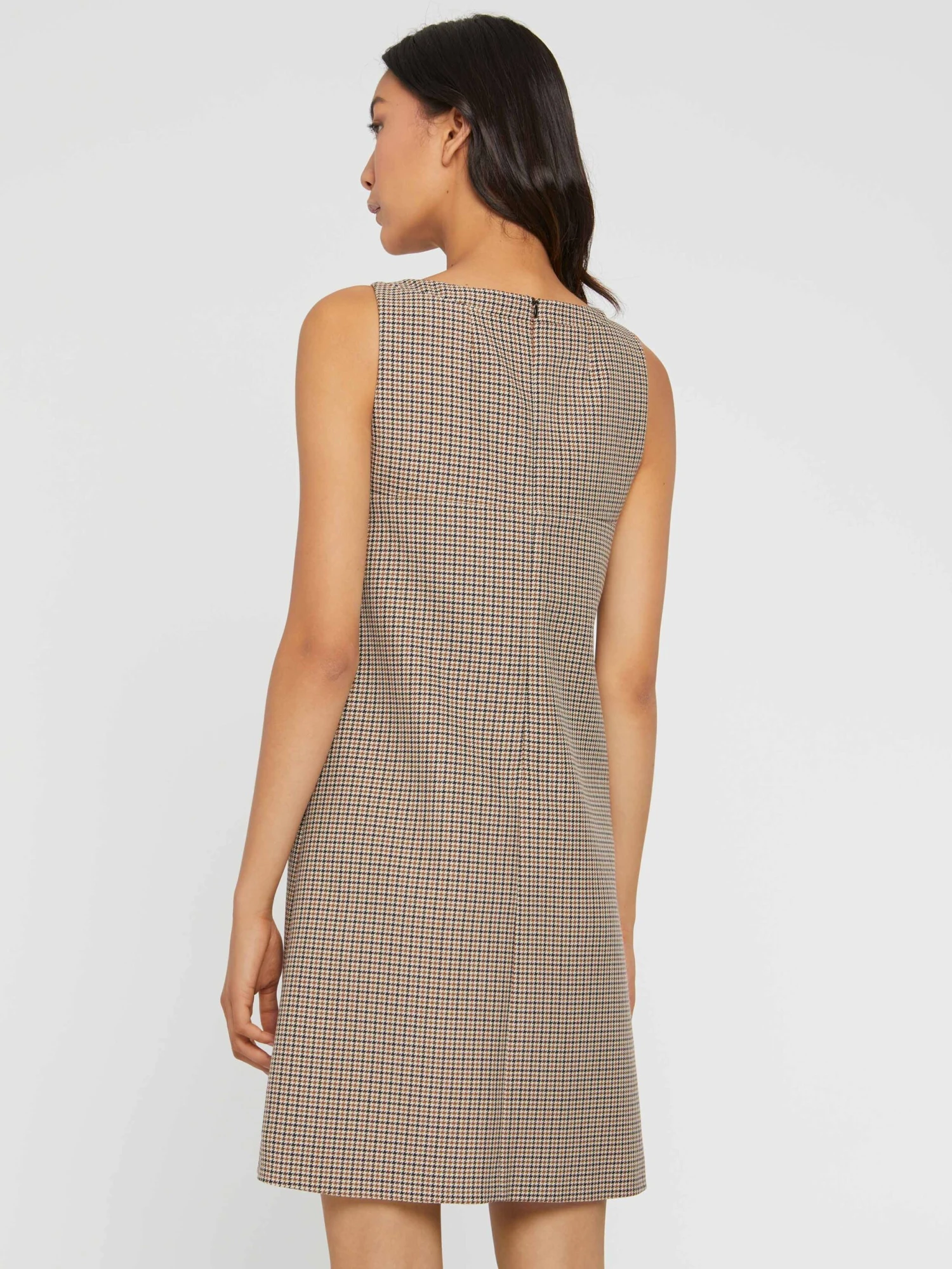 La mini-robe trapèze se dessine dans une coupe sans manches dotée d’une encolure échancrée. Sa ligne minimale élégante est caractérisée par une couture marquée au niveau de la poitrine et l’imprimé pied-de-poule. Une allure british chic facile au quotidien. La robe se ferme par un zip invisible au dos. La longueur de la jupe à partir de la taille est de 55 cm.