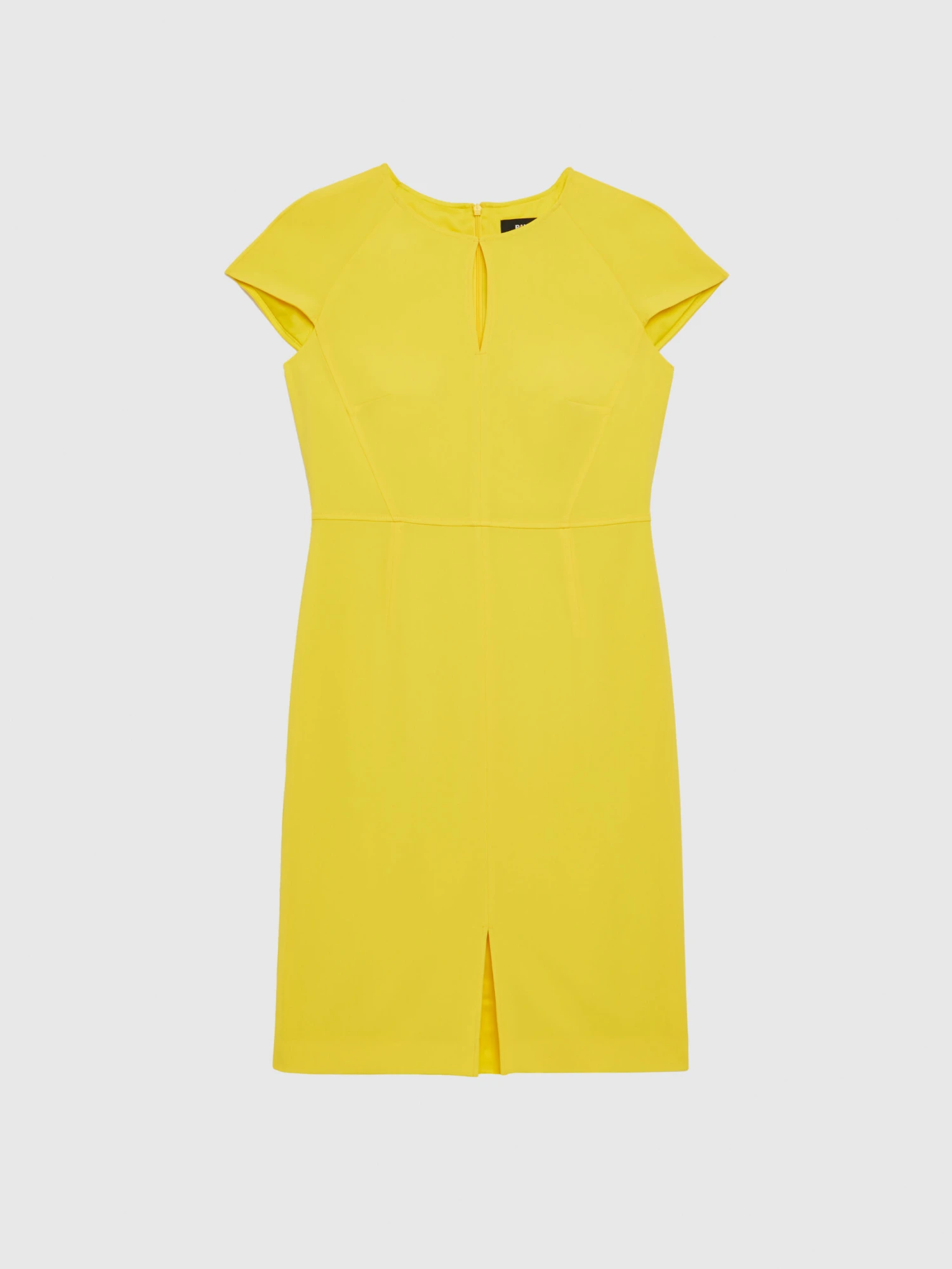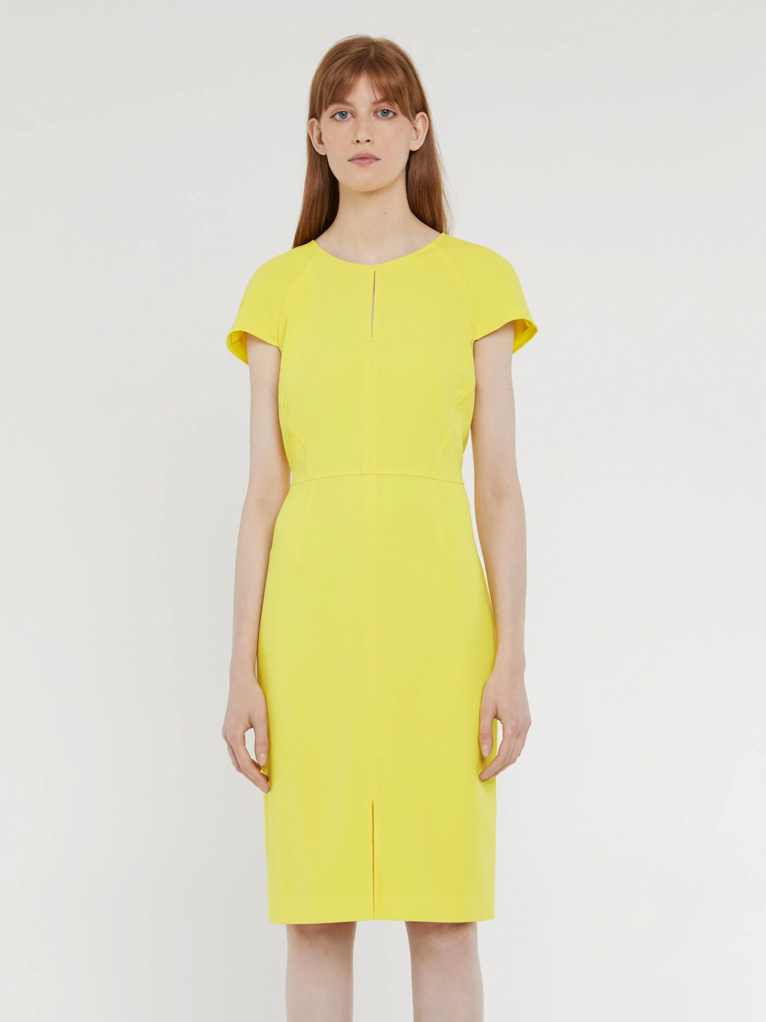 La robe droite mi-longue se porte près du corps et exalte votre féminité. Sa coupe manches courtes est dotée d’un décolleté sage légèrement fendu. Confectionnée en crêpe envers satin, la robe s’impose comme figure de simplicité au service de l’élégance. Fermeture éclair invisible dans le dos. Longueur de la robe à partir de la taille : 60 cm.