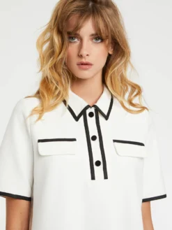 -Robe fendue, avec volants à couleur contrastée et satinée
