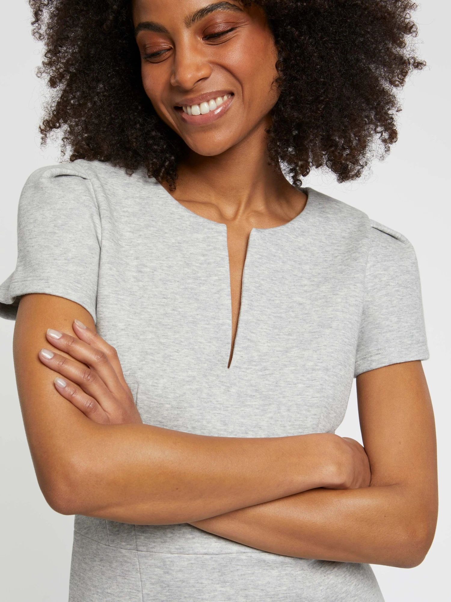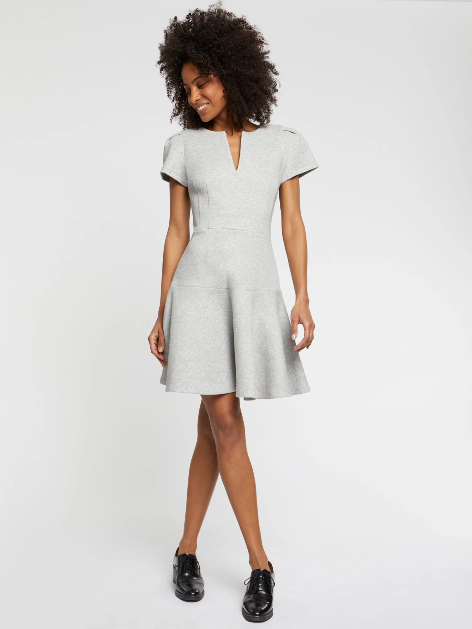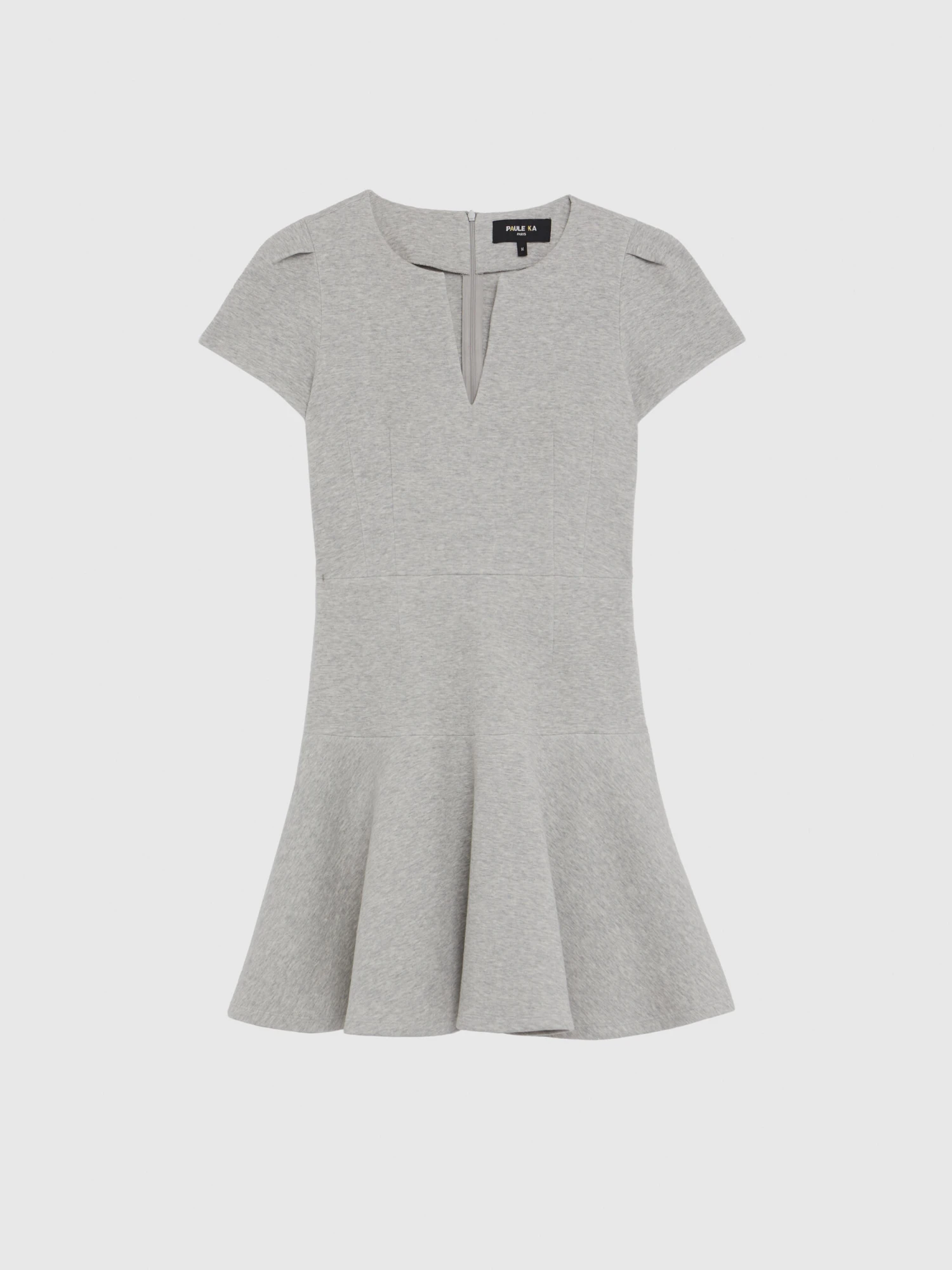 La robe courte près du corps à taille basse sculpte la silhouette avant d?éclore sur une jupette patineuse ultra volumineuse. Le rendu structural du vêtement est sublimé par la confection en maille néoprène réalisée en double jersey stretch. Une création moderne qui vient bousculer la coupe sage manches courtes et décolleté fendu. Fermeture éclair invisible dans le dos. Longueur à partir de la taille : 50 cm.