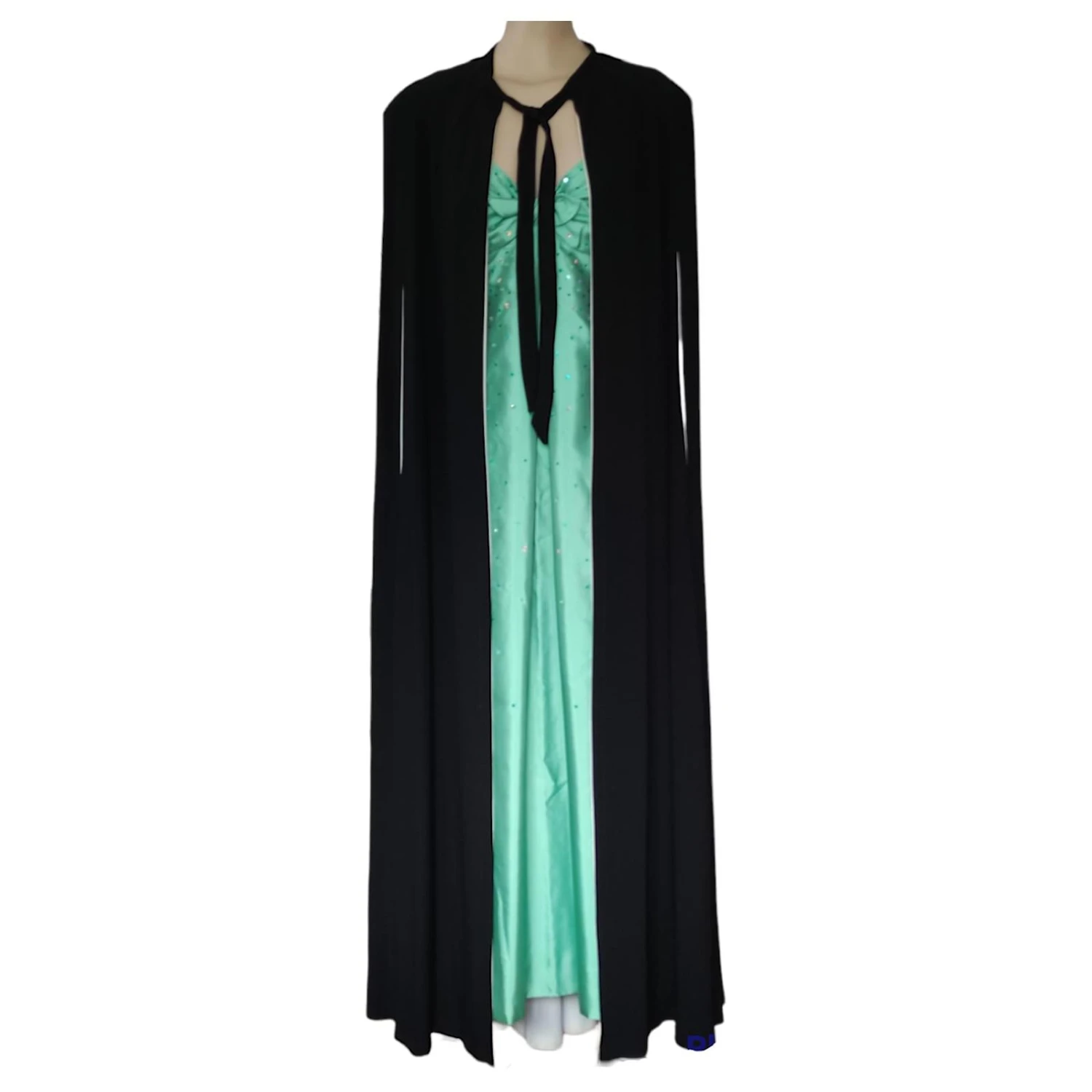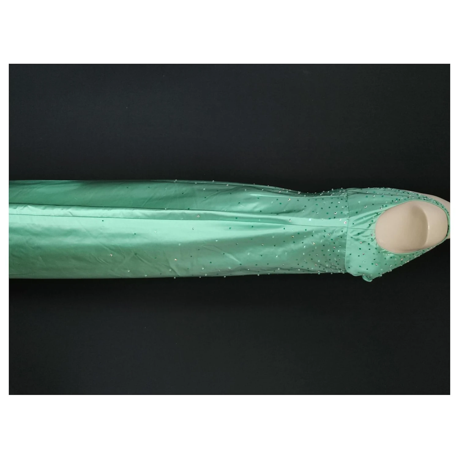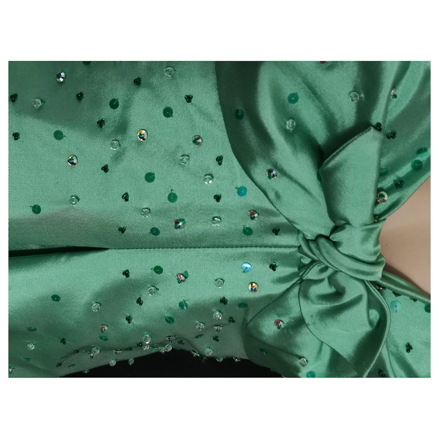 Magnifique robe de soirĂ©e en soie vert d’eau, ponctuĂ©e de perles, de sequins cousue