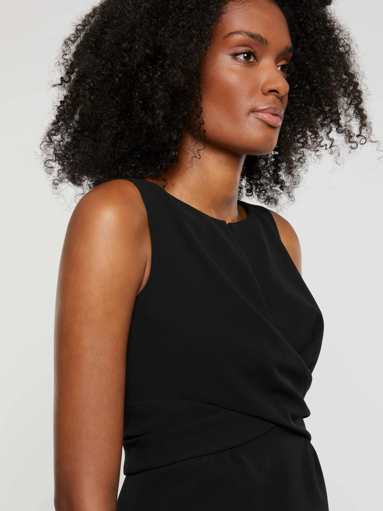 Le top sans manches en crêpe envers satin est entièrement réalisé sur le côté mat de la matière. Sa coupe ajustée près du corps est dotée d’un décolleté fendu. Le corsage plissé vient se croiser sur la poitrine avant de se rejoindre dans le dos. Un jeu féminin qui vient souligner votre taille.